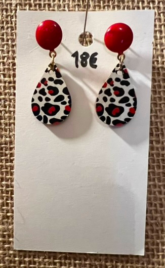 Punanuppiset pantteri puumassakorvikset. Kuviointi vain yhdellä puolella. Nuppiosa metallia.